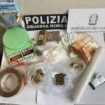Nel corso dell’intervento sono stati sequestrati oltre 600 grammi di marijuana, dosi di cocaina e un bilancino elettronico