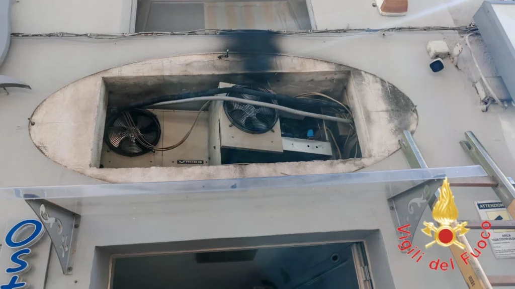 Il rapido intervento dei vigili del fuoco ha impedito che le fiamme raggiungessero il negozio, limitando i danni alla sola apparecchiatura e all’insegna