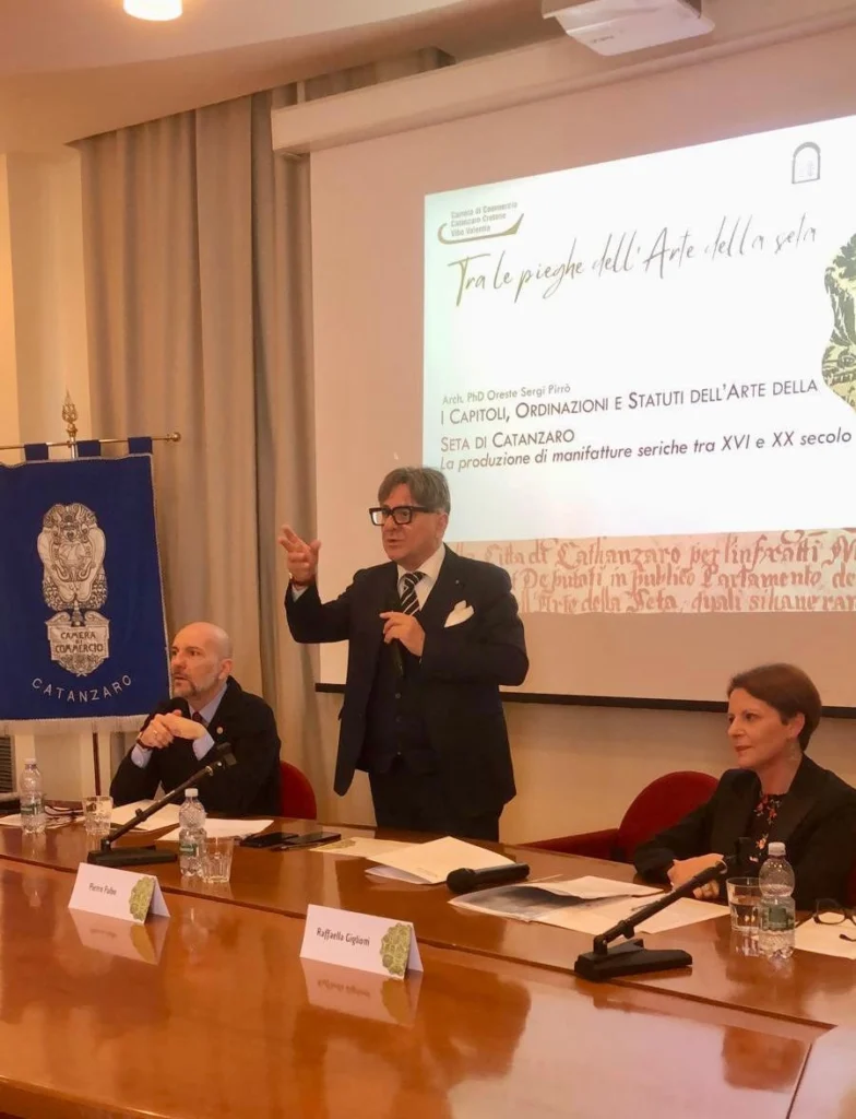 L’evento, introdotto e moderato da Raffaella Gigliotti, funzionario camerale responsabile degli Attrattori culturali, è stato prodotto dalla Camera di Commercio con la curatela scientifica dell’architetto Oreste Sergi Pirrò, ed è stato progettato per mettere in evidenza il volume notoriamente più prezioso della collezione documentale, i “Capitoli, Ordinazioni e Statuti dell’Arte della Seta di Catanzaro”, ereditato dalla precedente Camera di Commercio ed Arti di Catanzaro, e fruibile ora in modo permanente nei locali della Biblioteca, allestito all’interno di una vera e propria teca museale.