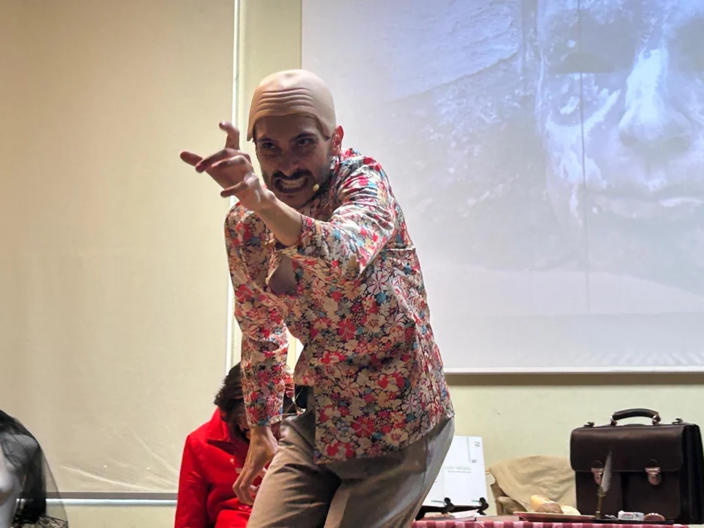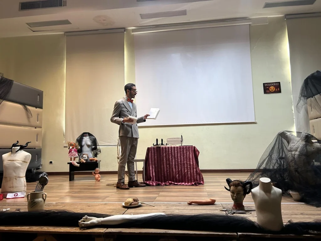 Le metamorfosi si sono moltiplicate sul piano artistico. Davide Costa ha dato forma a personaggi perturbanti ed emozionanti, mostrando una straordinaria capacità di mutare registro, ritmo e intensità, passando con naturalezza da una dimensione all’altra. Accanto a lui, Rita Rotundo, danzatrice e attrice, che ha restituito una potente espressività silenziosa, una vera e propria “voce corporea” capace di amplificare il senso delle scene.